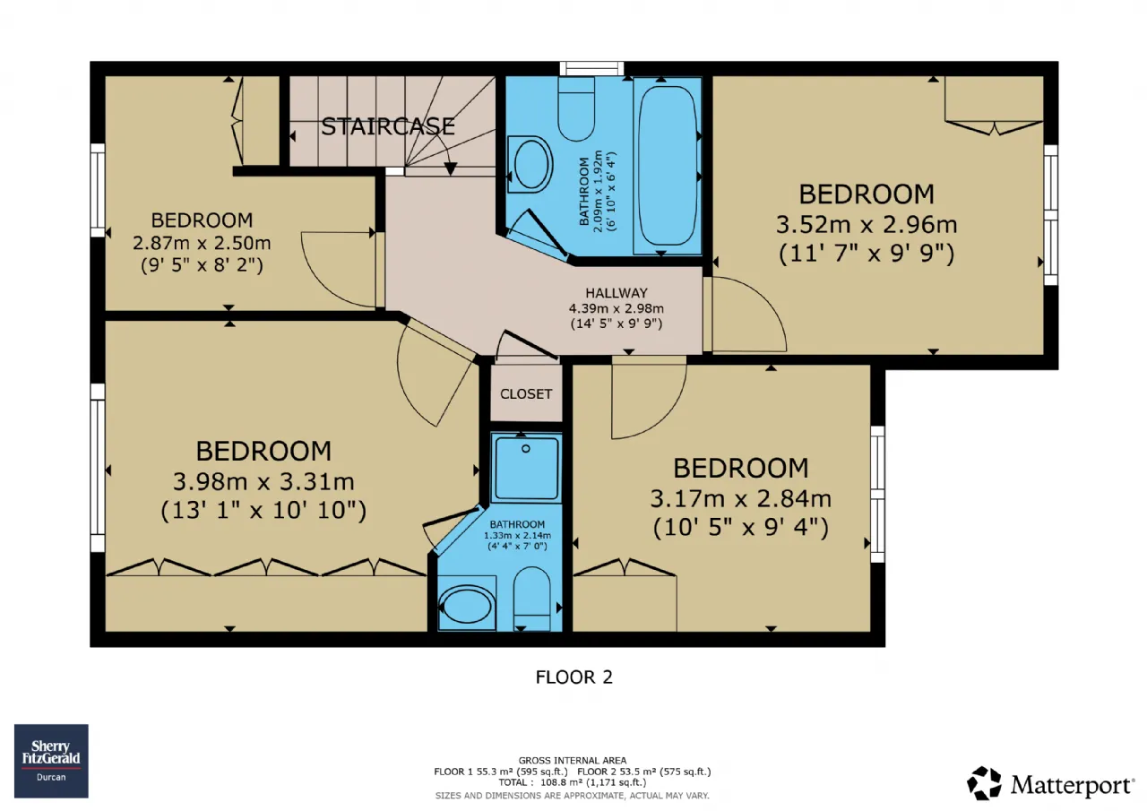 Bedroom 2 3.18m x 2.84m with solid wood flooring and fitted wardrobes.