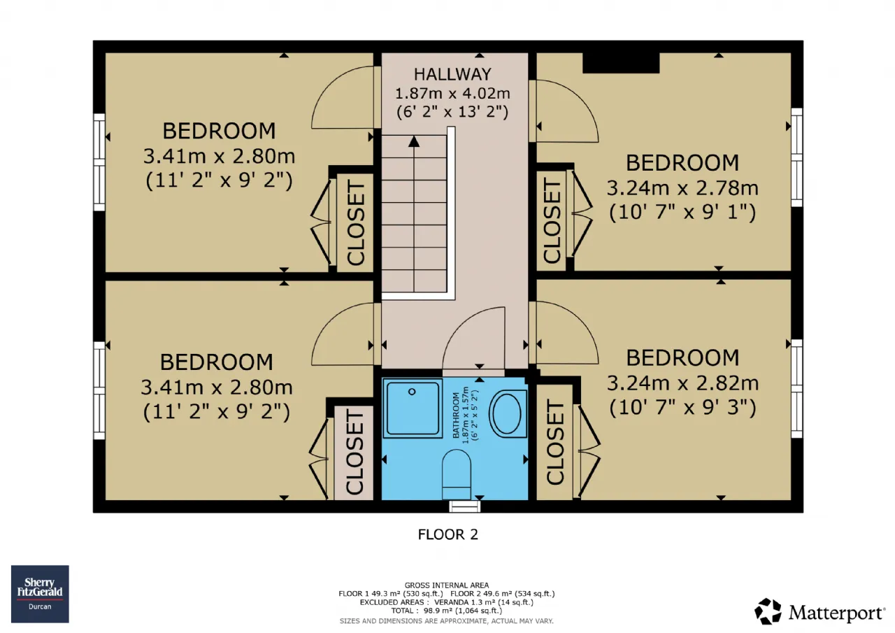 Bedroom 4 3.4m x 2.8m with carpet flooring and fitted wardrobes.