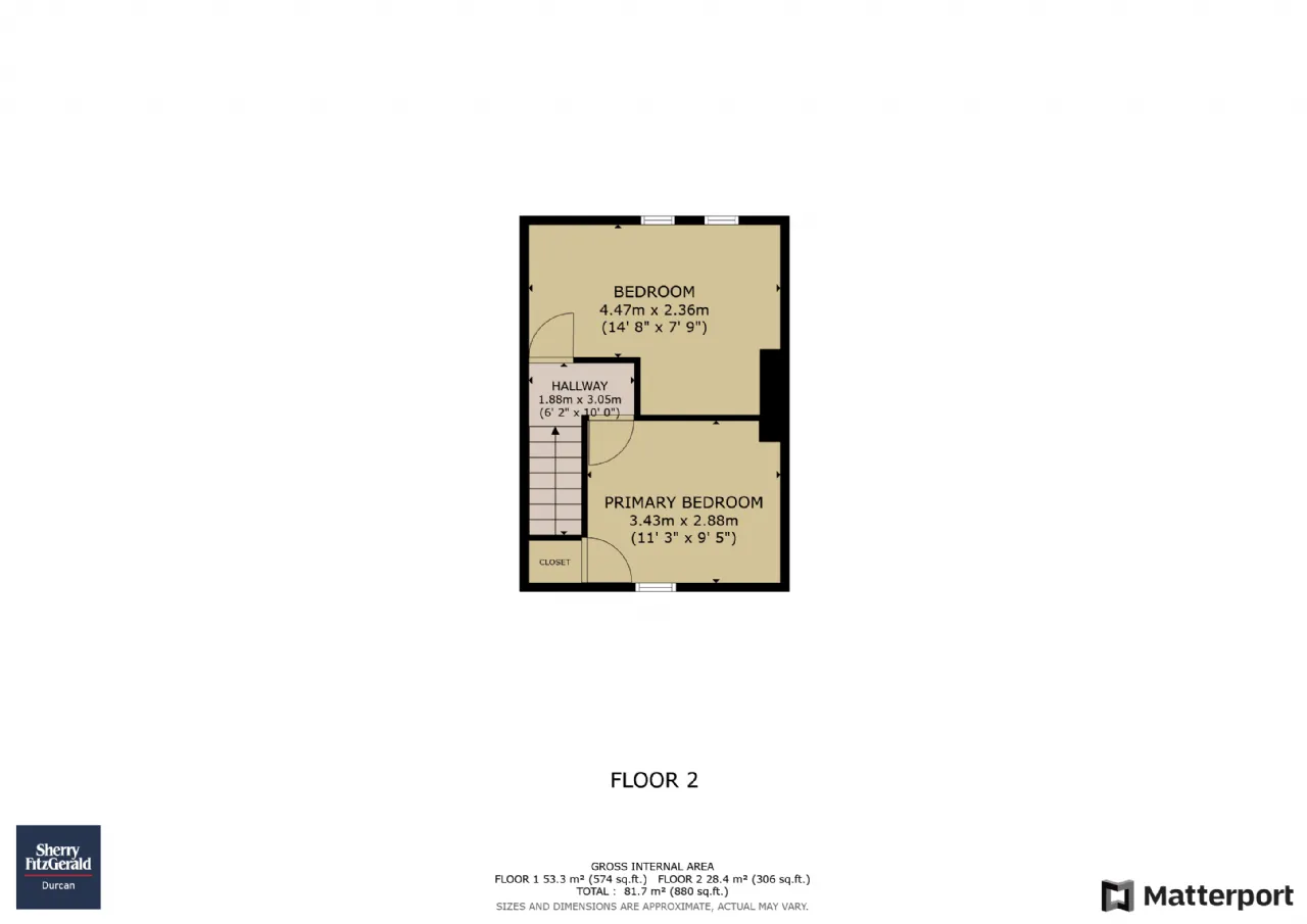 Bedroom 2 4.47m x 2.36m with laminate wood flooring.
