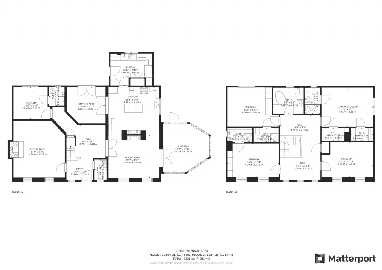 Master Bedroom 4.8m x 3.66m with en-suite and his & her's walk-in wardrobes.