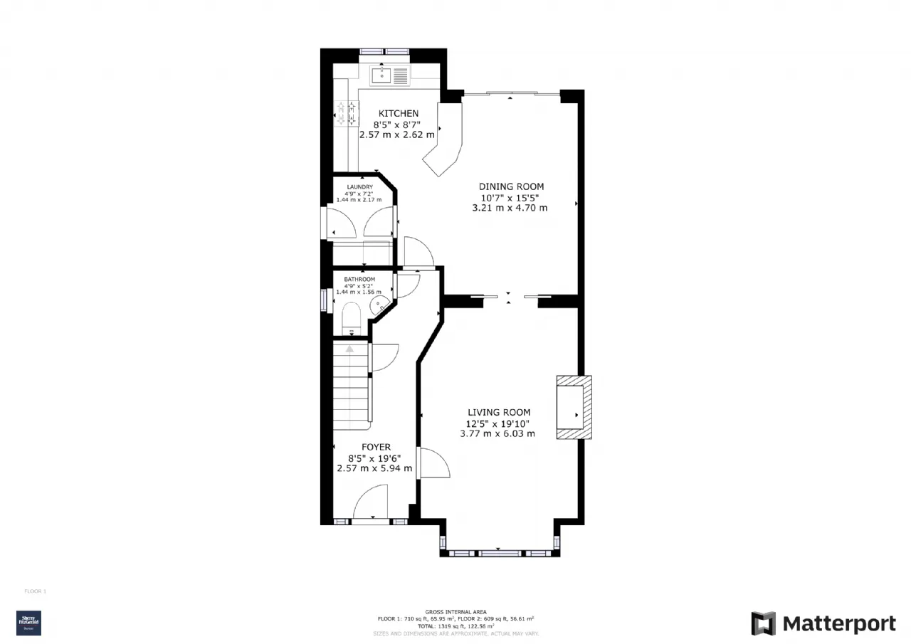 Entrance Hall 2.57m x 5.94m finished in netural pastels and flooded with natural daylight.