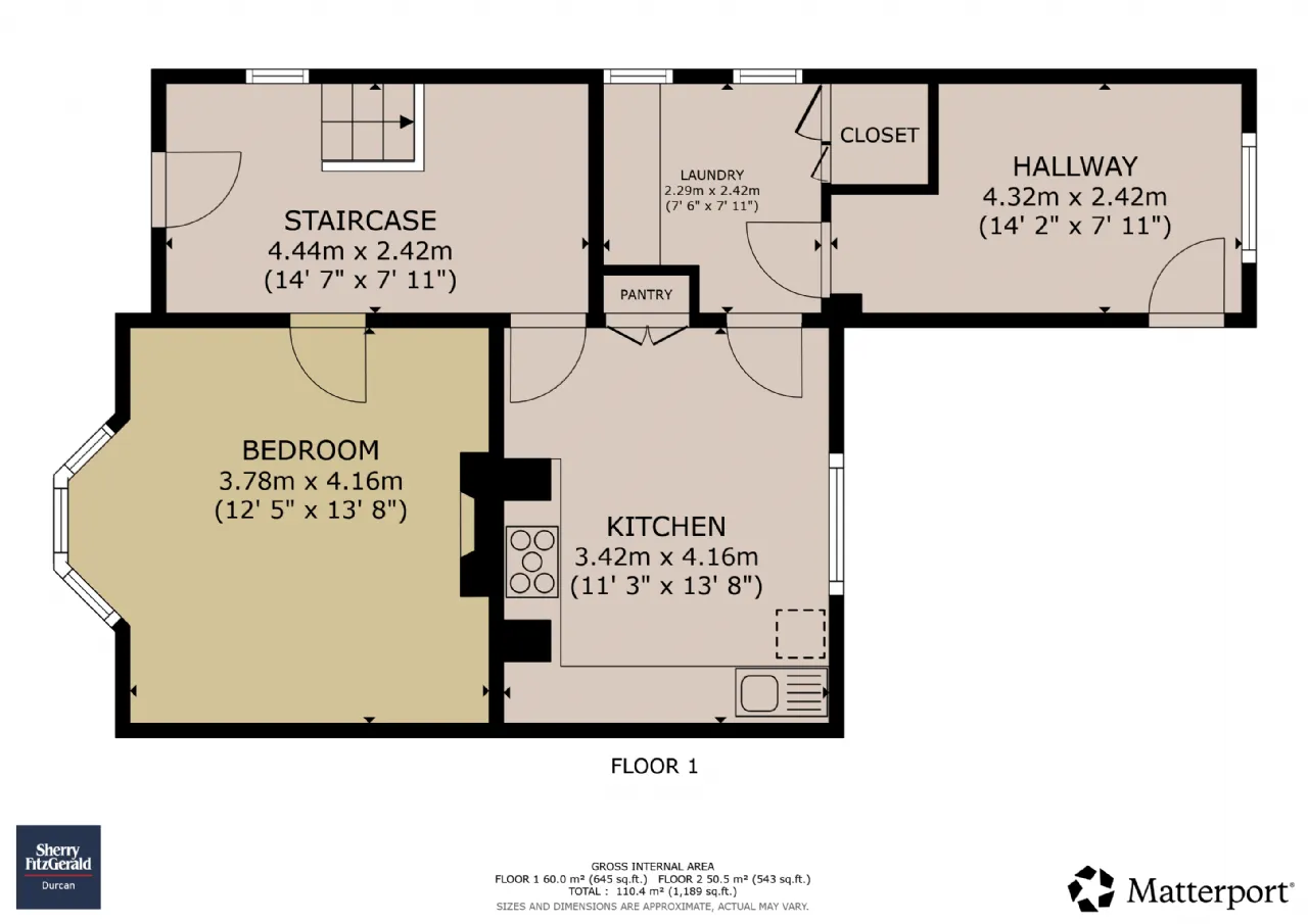 Utility Room 2.29m x 2.42m Located just off the kitchen with large counter space and hotpress.