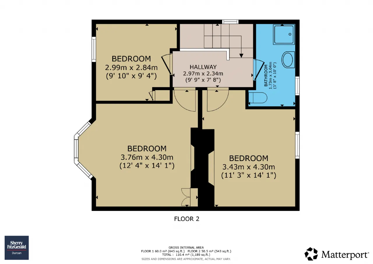Master Bedroom 3.76m x 4.30m Large bay windows, fitted wardrobe & fireplace feature