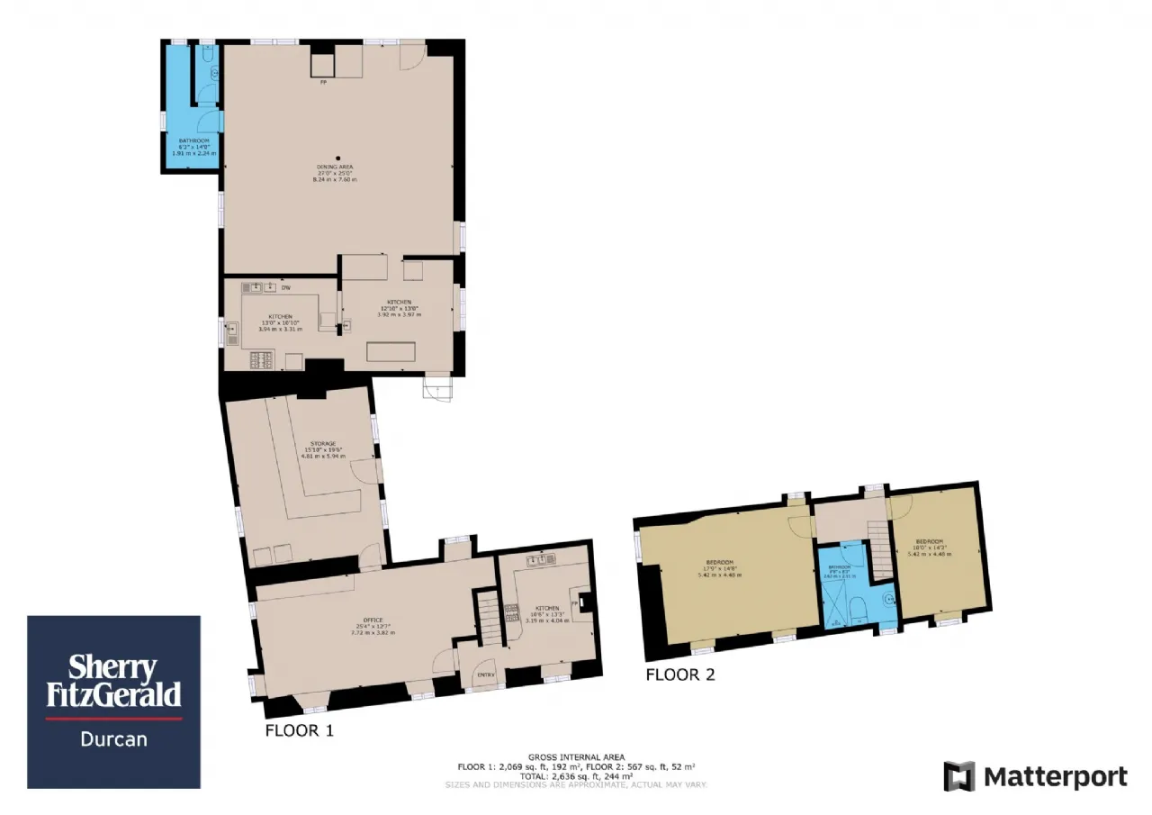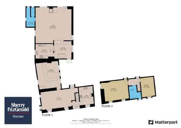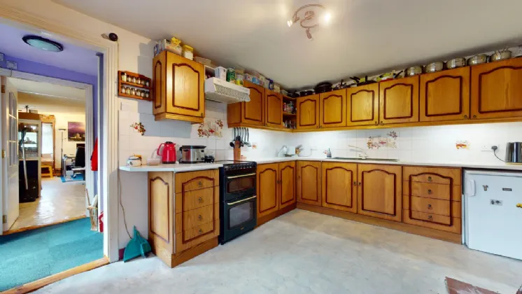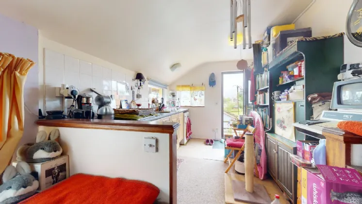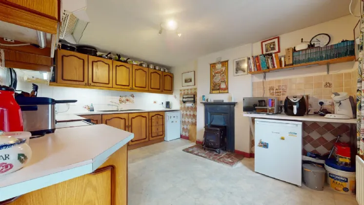 The main dwelling is a two storey stone building currently laid out as an entrance porch, kitchen open plan living / dining on the ground floor. The first floor comprises two large double bedrooms and a shower room.
