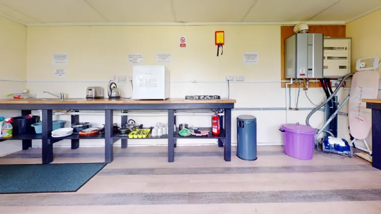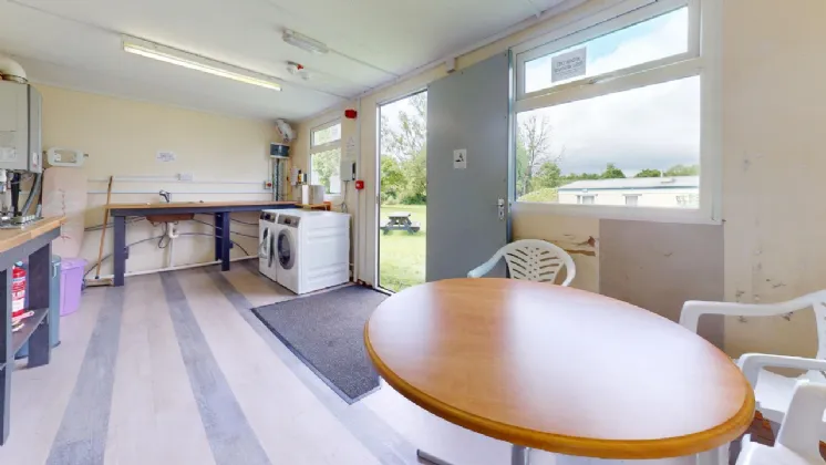 The next building as you go through the park houses a large storage shed / worksop complete with a first floor one bedroom apartment.