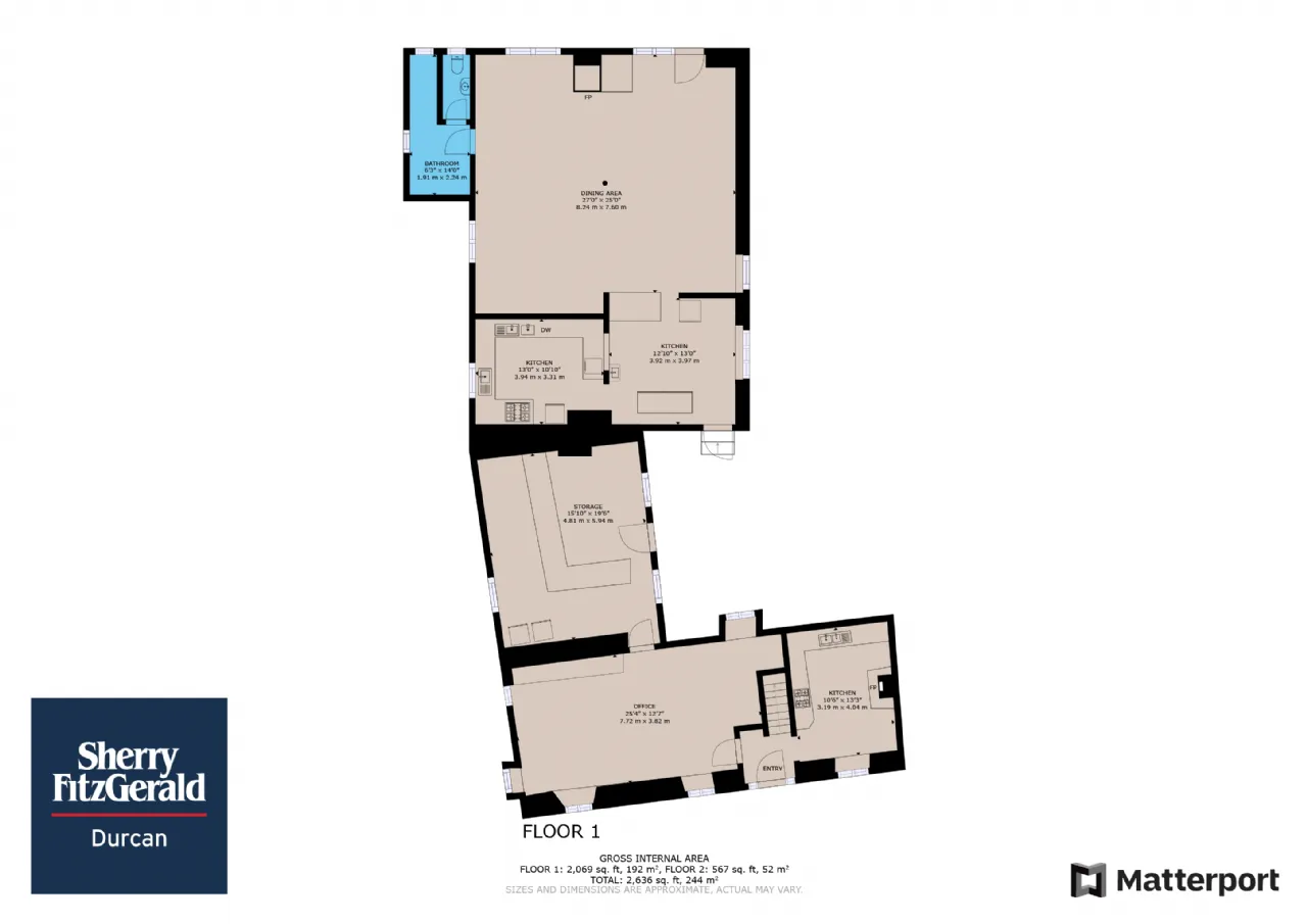 Living Dining 7.72m x 3.84m with acces to the reception / shop area.