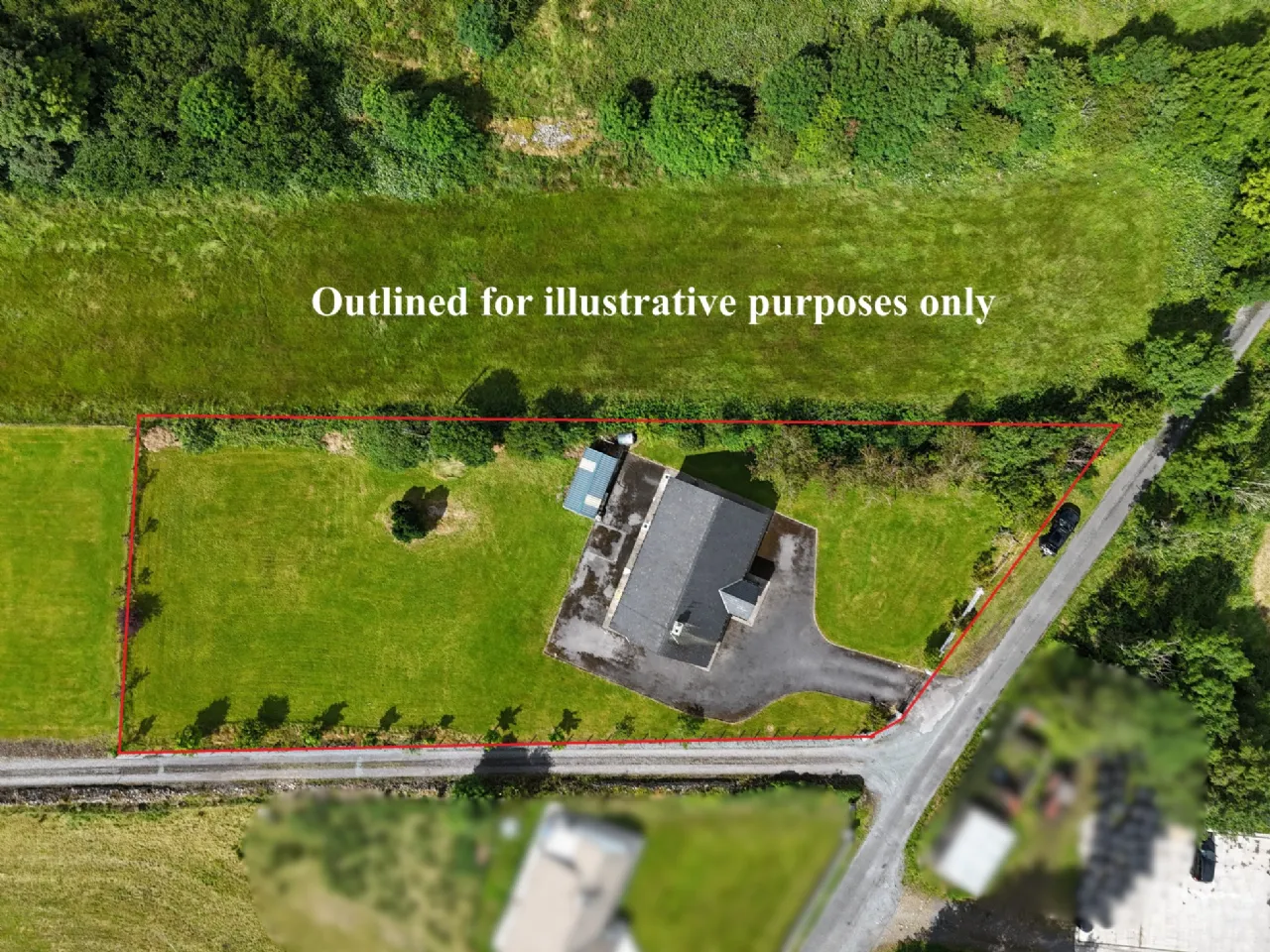 The house sits on a large, well-defined site with a well kept lawn to the front, a large lawn to the rear, and off-street parking via a tarmac drive to the front, side and rear, There is a Steeltech shed to the rear and the house is serviced by a septic tank on-site.