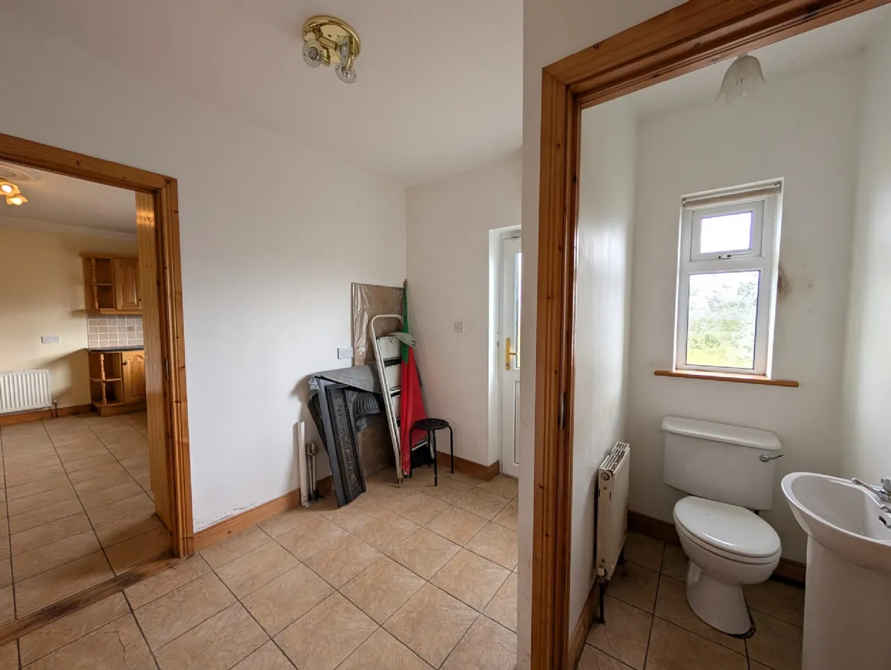WC 0.9m x 1.5m With tiled floor, WC and wash hand basin.