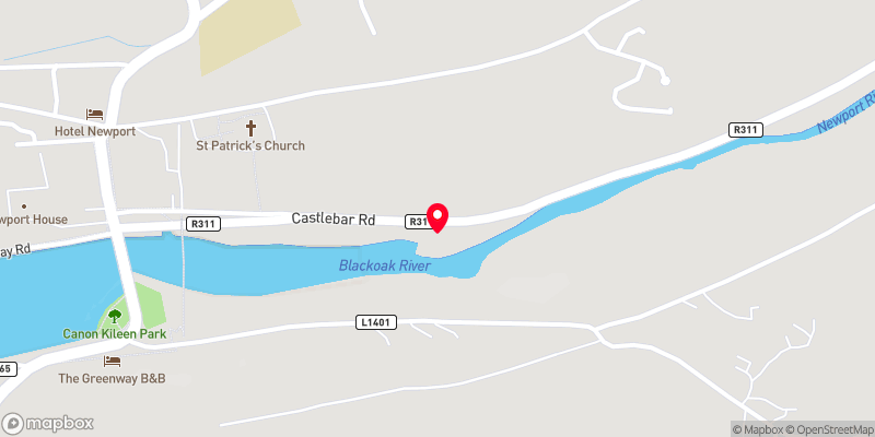 Newport is a small picturesque town in County Mayo, located along the shore of Clew Bay, north of Westport. The N59 road passes through the town and Castlebar is approx 18 km east of Newport. The Black Oak River flows through the centre of the town and there are pleasant walking paths along its grassy banks. Newport has a very striking railway bridge (no longer used for rail carriage) which, together with the Church on top of the hill, dominate the town and create a picturesque appearance.