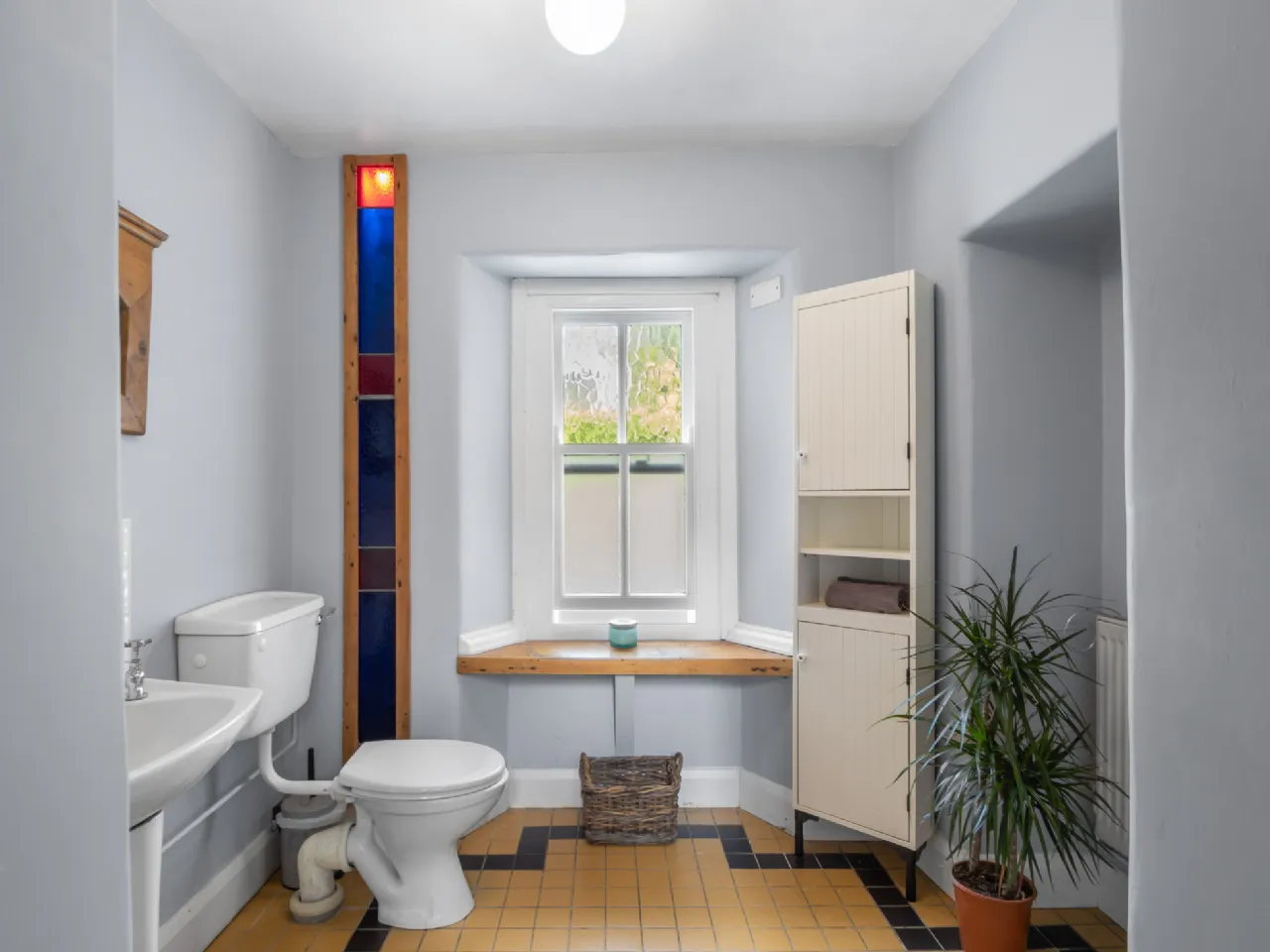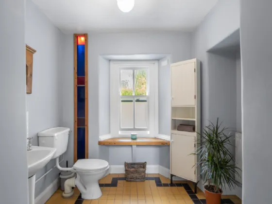 Guest WC 2.62m x 2.16m Original tile floor & backsplash, sash window,