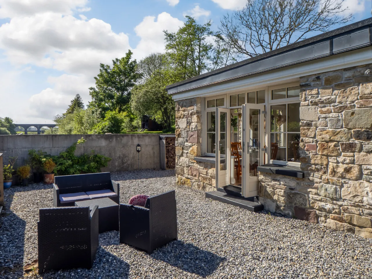 Exposed natural stone walls and wooden lintels in the dining room, kitchen and main bathroom are further examples of these features. These thoughtful nods to the past accentuate the history and beauty throughout the home.