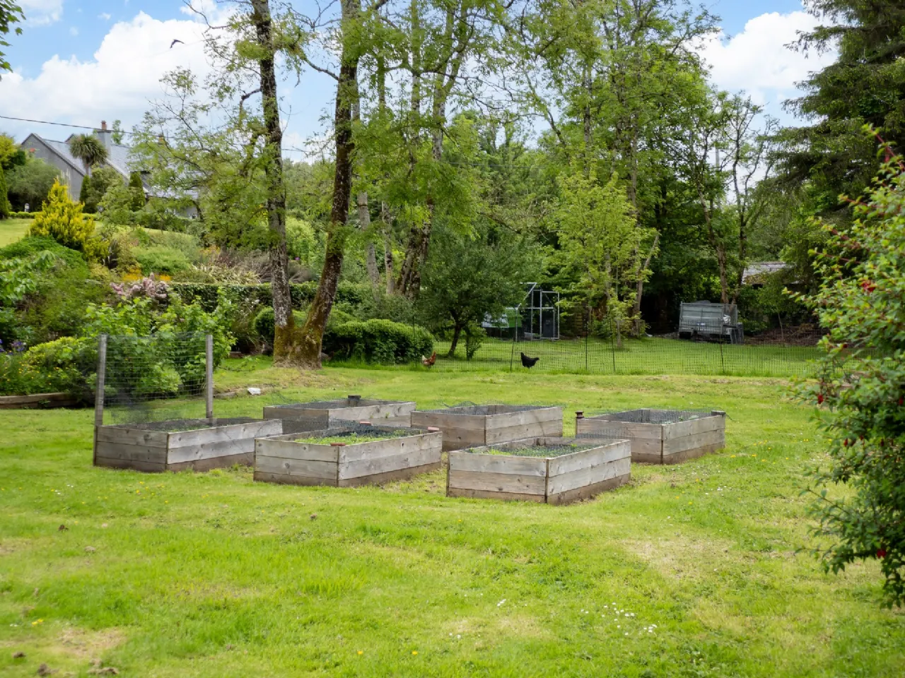 The Courtyards have been designed with gravel paths and paving, making it an idea area to relax or entertain guests. Most of the garden to the side of the house gives plenty of space for play areas and include a children’s playhouse, swings and slides. It is a perfect location to grow your own produce.