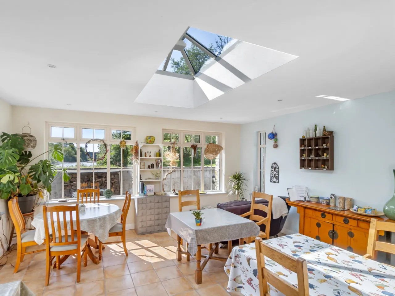 The five bedrooms (two en-suite) are all bright and offer a mix of river and garden views. The current owners added the lobby/games room and the Orangery as additional guest space, utilising all the rooms in the property to their best potential.