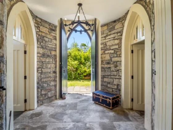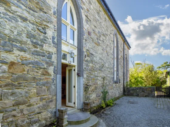 The property was retired from use as a church circa 1990 and its conversion was architecturally overseen to an exceptional standard. Built of limestone, the property successfully blends the old and new to create a comfortable and atmospheric residence. Some of St Catherine’s exceptional features include Egyptian sandstone flagstone tiling throughout the ground floor, an original stained glass window in the kitchen/ dining room which was sensitively restored by local artist Linda Grieve/Mulloy and some of the original flagstone flooring.