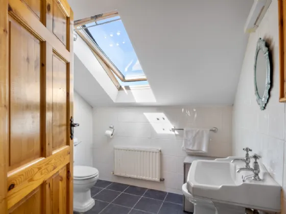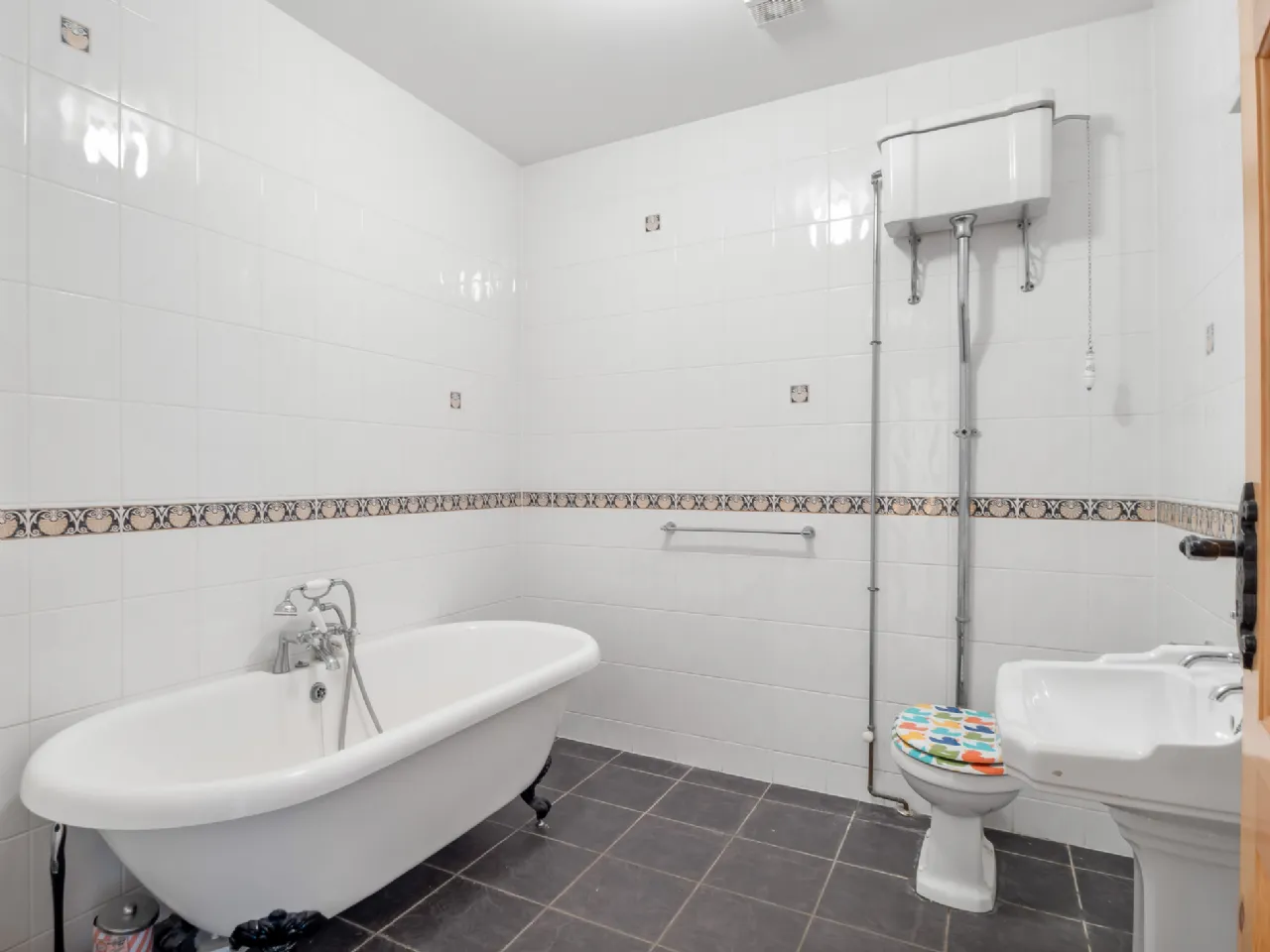 Bathroom 2.56m x 2.36m Fully tiled, roll top bath, wc, whb