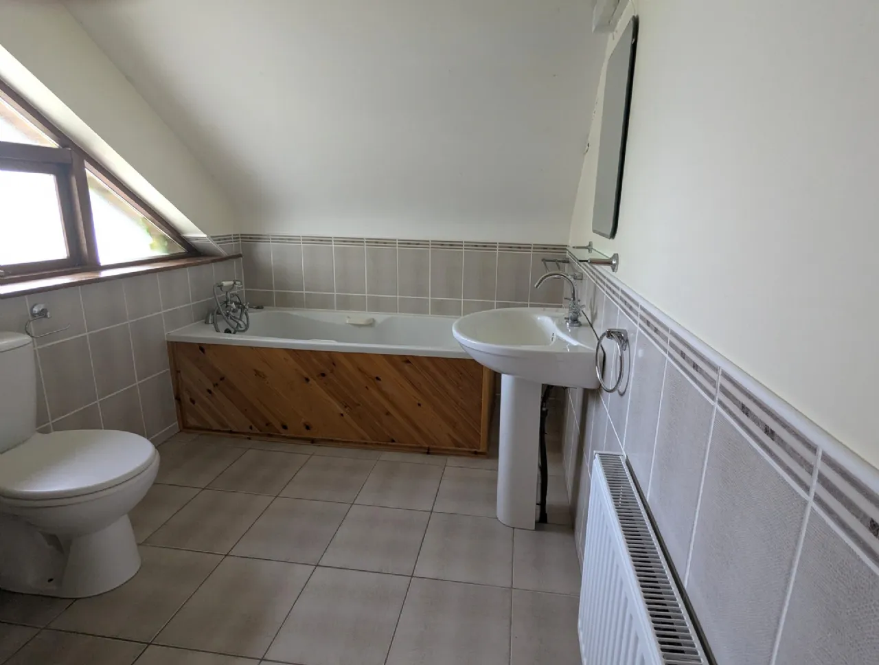 Bathroom 2.7m x 2.16m Tiled, bath, wc, whb