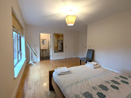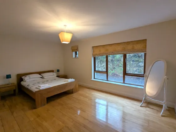 On the first floor there is a very substantial bedroom with an open beam vaulted ceiling, window balcony, a large en-suite shower room and walk-in wardrobe. This room offers a new owner potential for subdividing to provide an additional living room or bedroom.