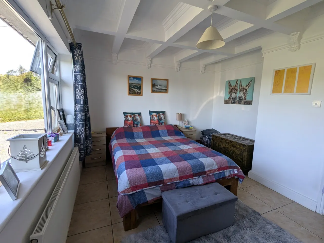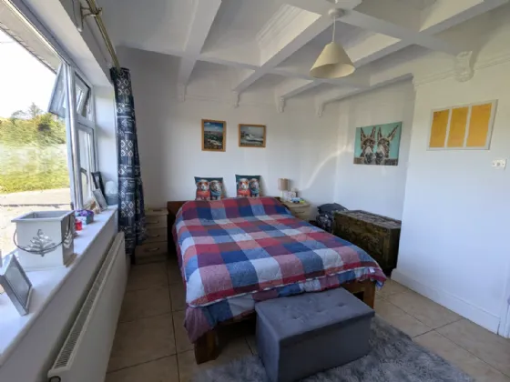 Bedroom One 4.54m x 3.52m Tiled floor, feature painted timber ceiling, Croagh Patrick views