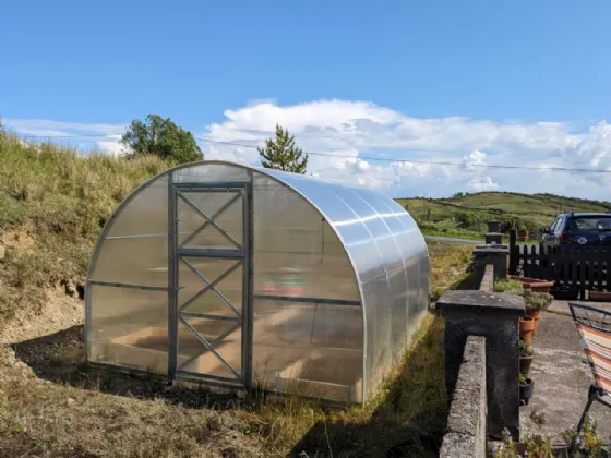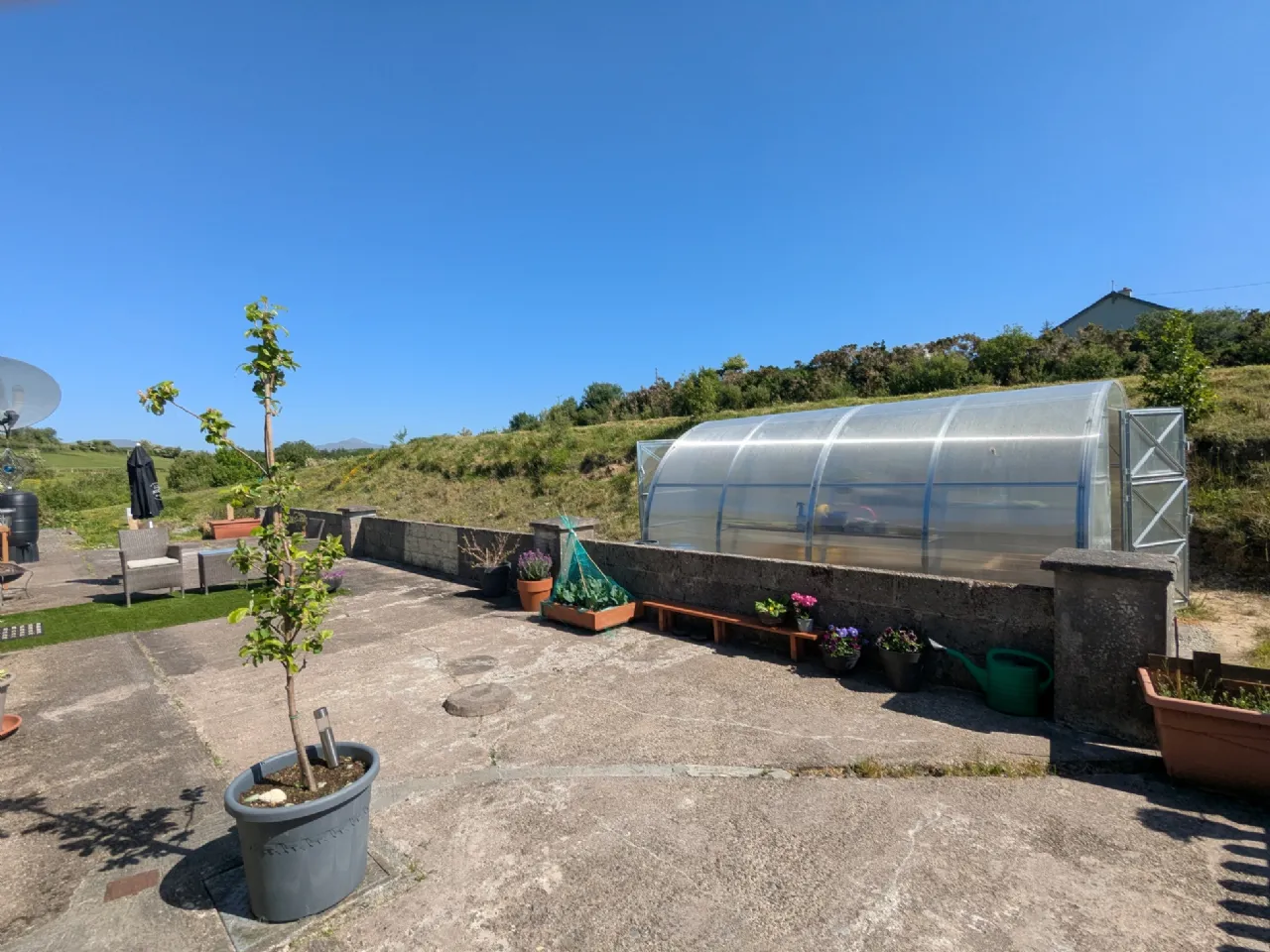 Externally the property has a dual entrance driveway with ample parking, a concrete terrace to the rear, small polytunnel and meadow areas to the front and rear of the house.