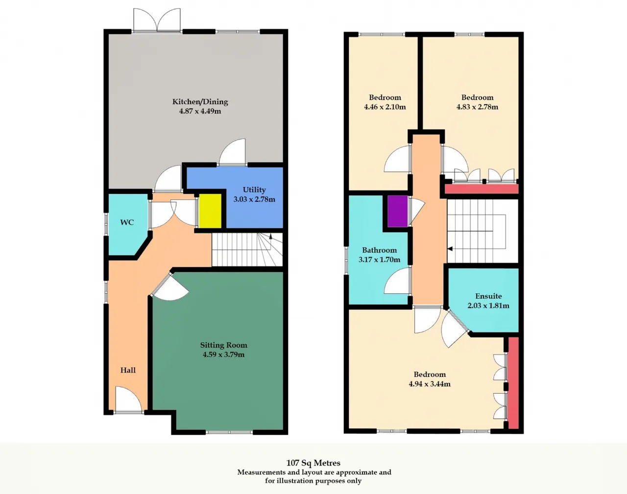 En-Suite Fully tiled, heated towel rail, extractor fan.