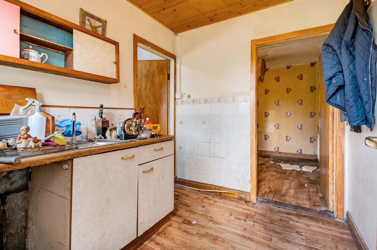 Outside the gardens are bursting with an array of mature and colourful flowers, shrubs and trees, including two apple trees. This is an ideal purchase for those looking for a restoration project in a quiet rural location. and with ample space to extend the residence and take it to the next level.