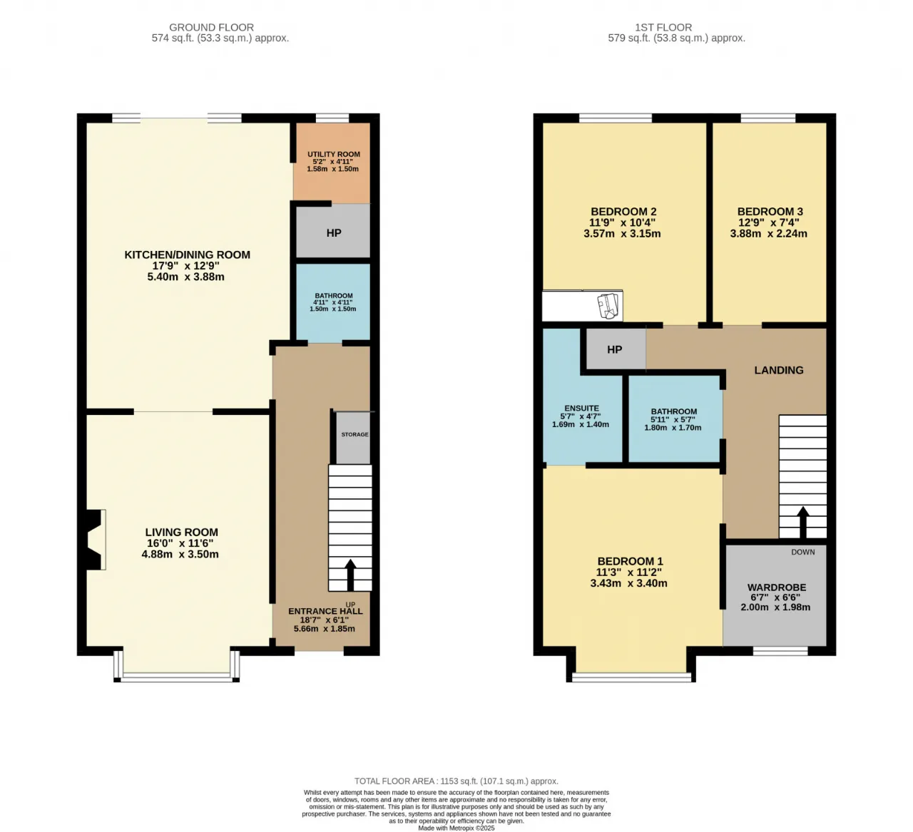 Bedroom 1 3.43m x 3.40m Main bedroom with bay window, walk-in dressing room, en suite and laminate flooring.