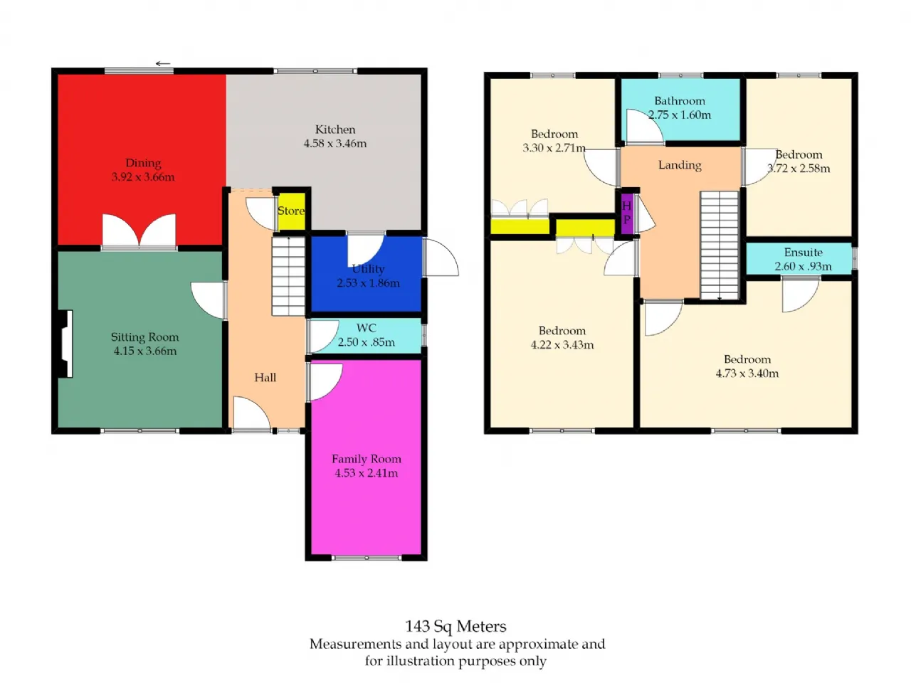 Well maintained and cared for by the original owner, this spacious family home comprising of approx 143 sq ft, hosts a bright and wide entrance hallway, family room, guest w.c., living room, kitchen/ dining room and utility room. Upstairs hosts four generous sized bedrooms (master bedroom with en-suite) and a bathroom completes the picture for this impressive home.