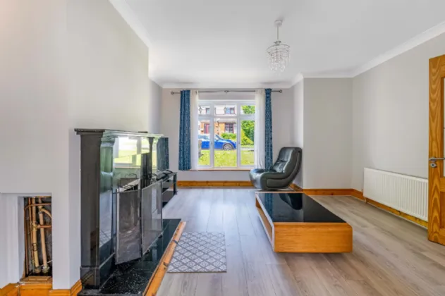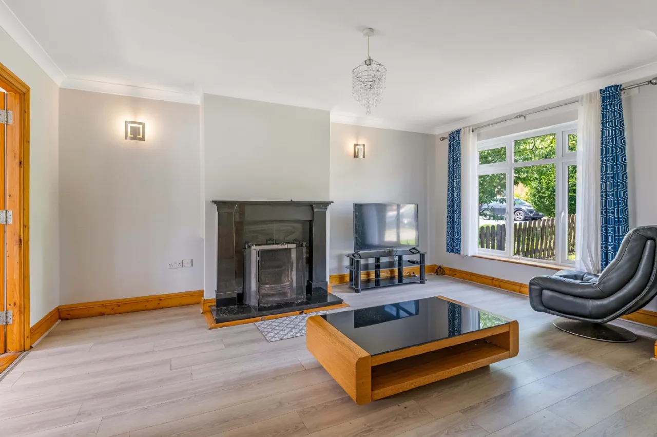 Sitting Room Spacious and well-proportioned, with a large front-facing window that fills the room with light. A feature fireplace provides a cosy focal point.