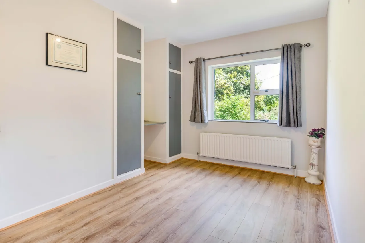 Garden The property sits on a generous, mature site with ample space both front and rear. The front garden is set well back from the road, offering privacy and plenty of parking space. A side passageway leads to a wide rear garden, predominantly laid in lawn, with mature hedging and planting that offers natural privacy. There is excellent potential to landscape or extend (subject to planning permission), and the garden’s size and orientation make it ideal for outdoor living, gardening, or even adding a home office or studio. With countryside views and peace all around, it’s a space that could easily become a real sanctuary.
