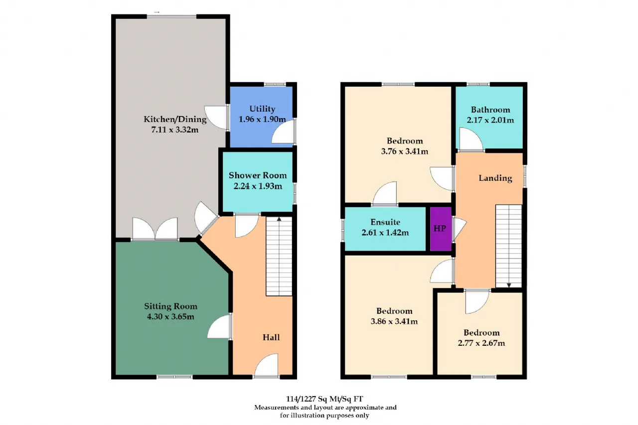 Landing Carpeted stairs and landing, access to roof space with STIRA, built in hot press with high capacity Air to water cylinder.