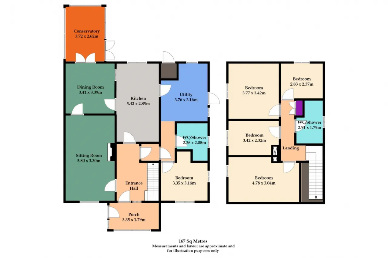 The residence is in need of modernisation and offers 3/4 reception rooms, including a conservatory, a downstairs bedroom (4th reception room) which would suit many uses, a wheelchair friendly shower room, a generous utility room/rear hall and 4 bedrooms on the first level.