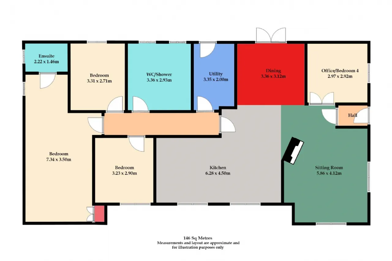 Bedroom 3 3.22m x 3.17m Well-proportioned bedroom suitable for guest or family use.