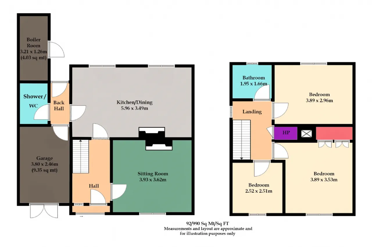 Extending to approximately 990 sq. ft. (92 sq. m), the accommodation comprises an entrance hall, a bright sitting room, kitchen/dining area, back hall, wet room, and an integral garage on the ground floor,. Upstairs features three bedrooms and a family bathroom. The integral garage offers excellent potential for conversion to additional living space (subject to the necessary planning permission).
