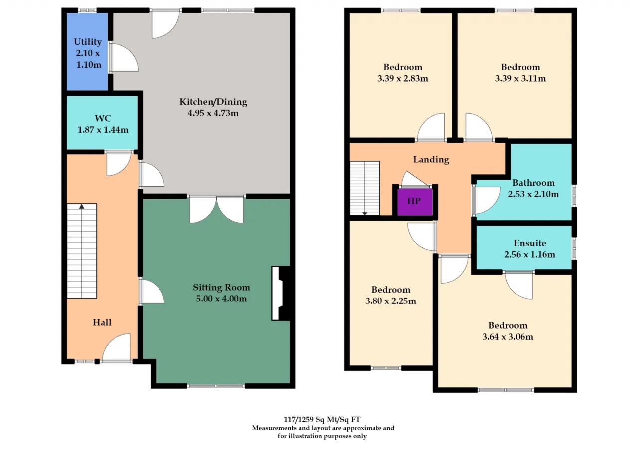 Upon entering, you are welcomed by a bright and inviting sitting room, which flows seamlessly into an open-plan kitchen and dining area. This light-filled space opens onto a large rear garden—ideal for family gatherings, outdoor dining, and entertaining. The ground floor also benefits from a separate utility room and a convenient guest WC.