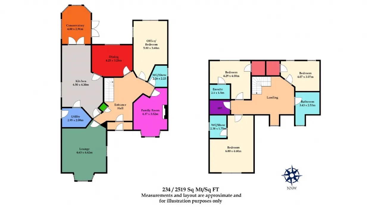 The most impressive design comprises of sittingroom, livingroom, diningroom, conservatory, kitchen, utility, shower room and ground floor bedroom / office, and conservatory. Upstairs there are 3 bedrooms, 2 en-suites and bathroom.