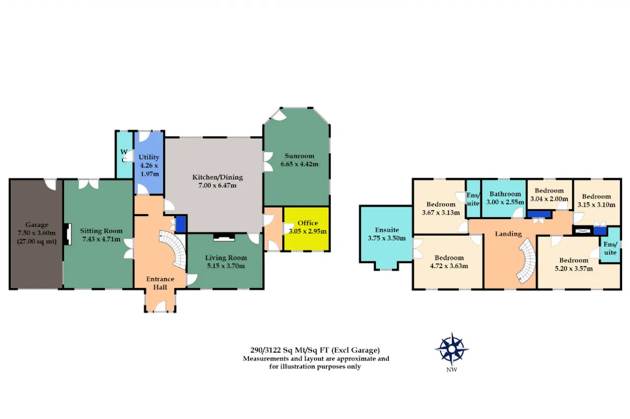 Originally redesigned and rebuilt in 1999, and further extended in 2004, the home presents elegant, spacious accommodation comprising a striking entrance hall with a curved staircase, three reception rooms, an open-plan kitchen and dining area, utility room, study and guest W.C. Upstairs, you’ll find four generously sized bedrooms, three of which are en-suite, along with a luxurious family bathroom.