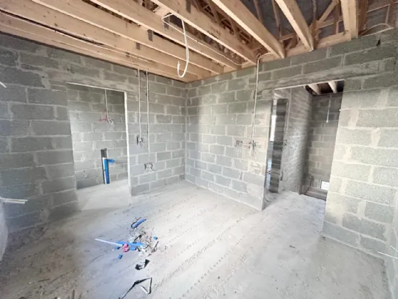 The property is unfinished but there is a great headstart made for the buyer seeking to expediate a new build project and finish out to their own taste.