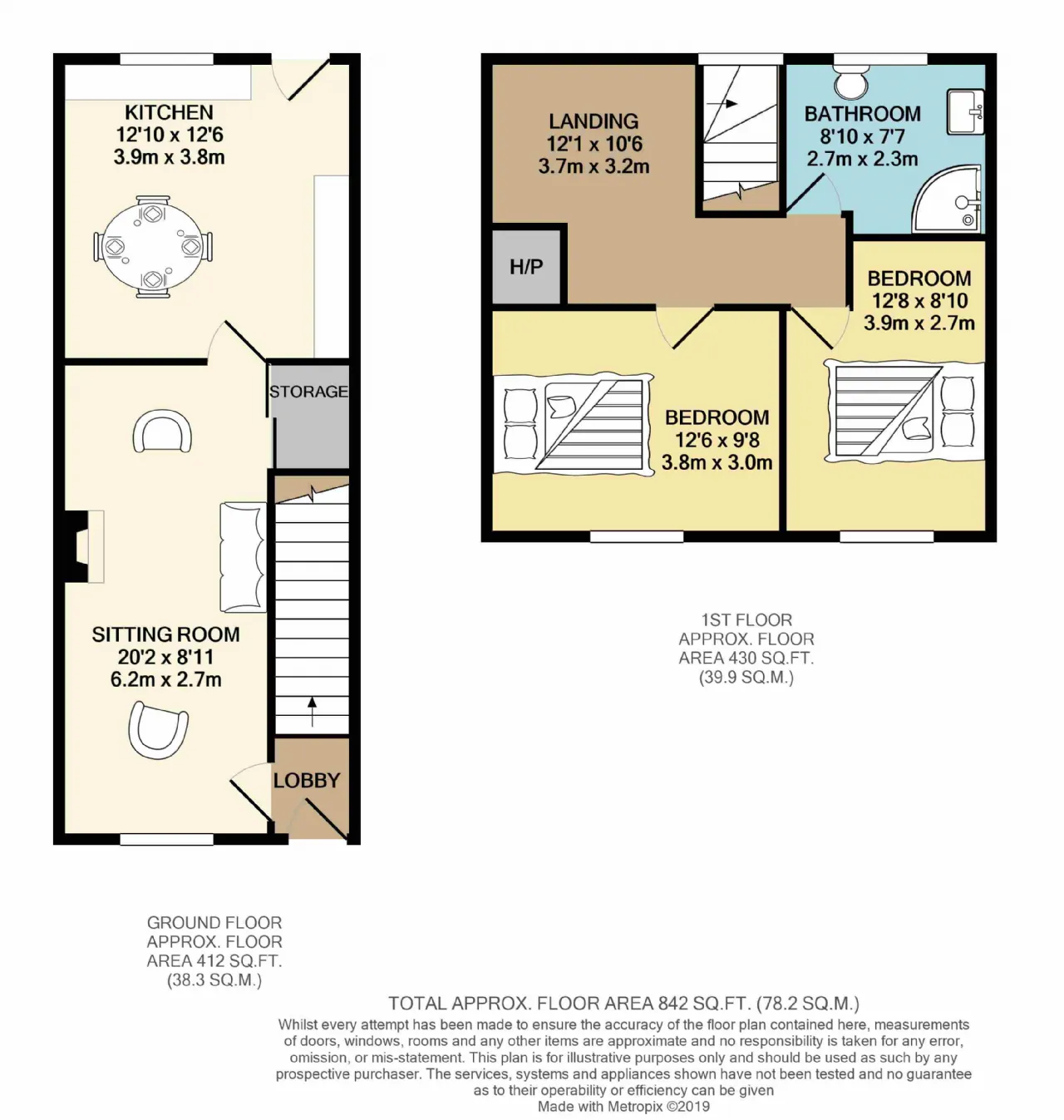 The accommodation in brief comprises the entrance hall, living room and kitchen, upstairs and two bedrooms and newly renovated shower room.