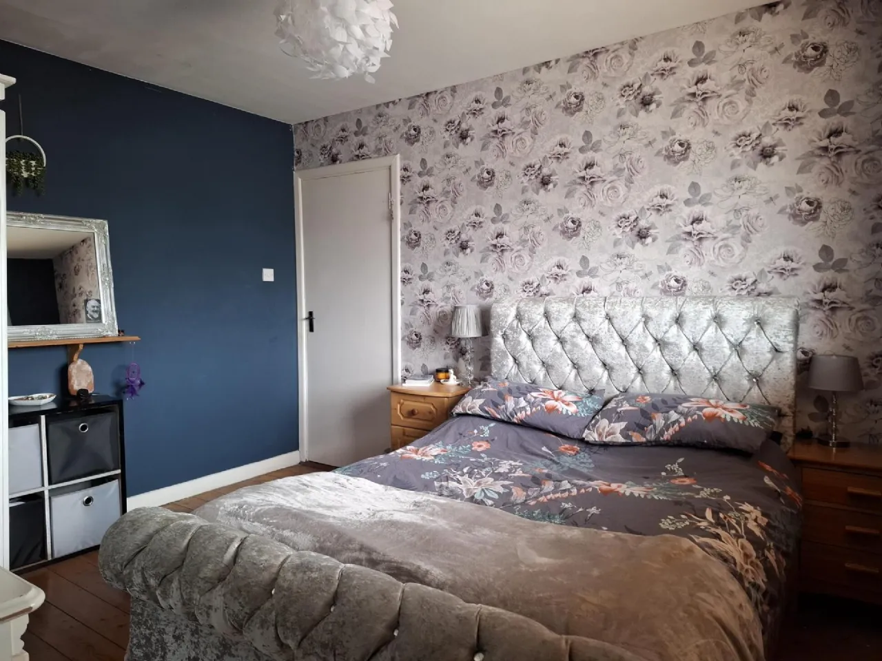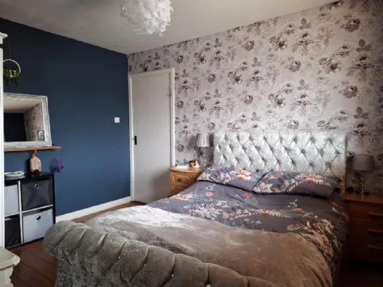 Bedroom 1 3.41m x 3.24 Built in wardrobe, polished wooded floors. Front aspect. Wall papered central wall.