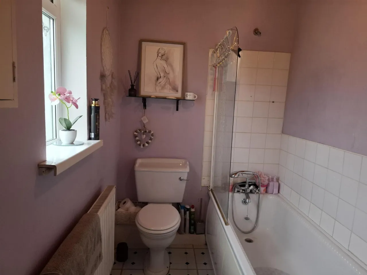 Bathroom 1.52m x 2.65m Contains wc and whb and bath. Tiled flooring.