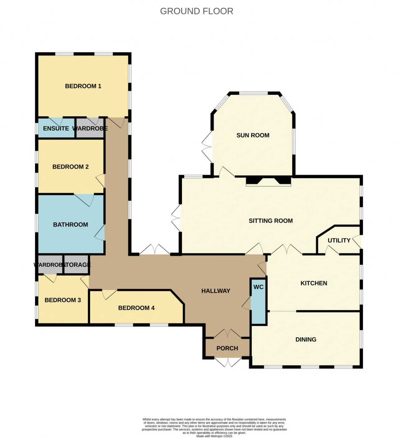 Off the hallway and inner hall you will find four spacious bedrooms - main en suite and walk in wardrobe. The second double bedroom features a Jack and Jill bathroom.