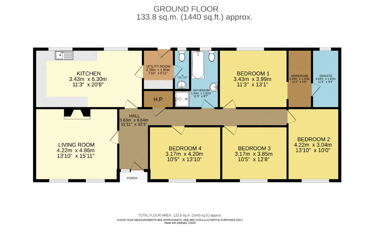 Bathroom 3.43m x 2.62m Fully fitted with bath WC WHB on vanity unit and Shower enclosure fitted with electric shower. Tiled floor