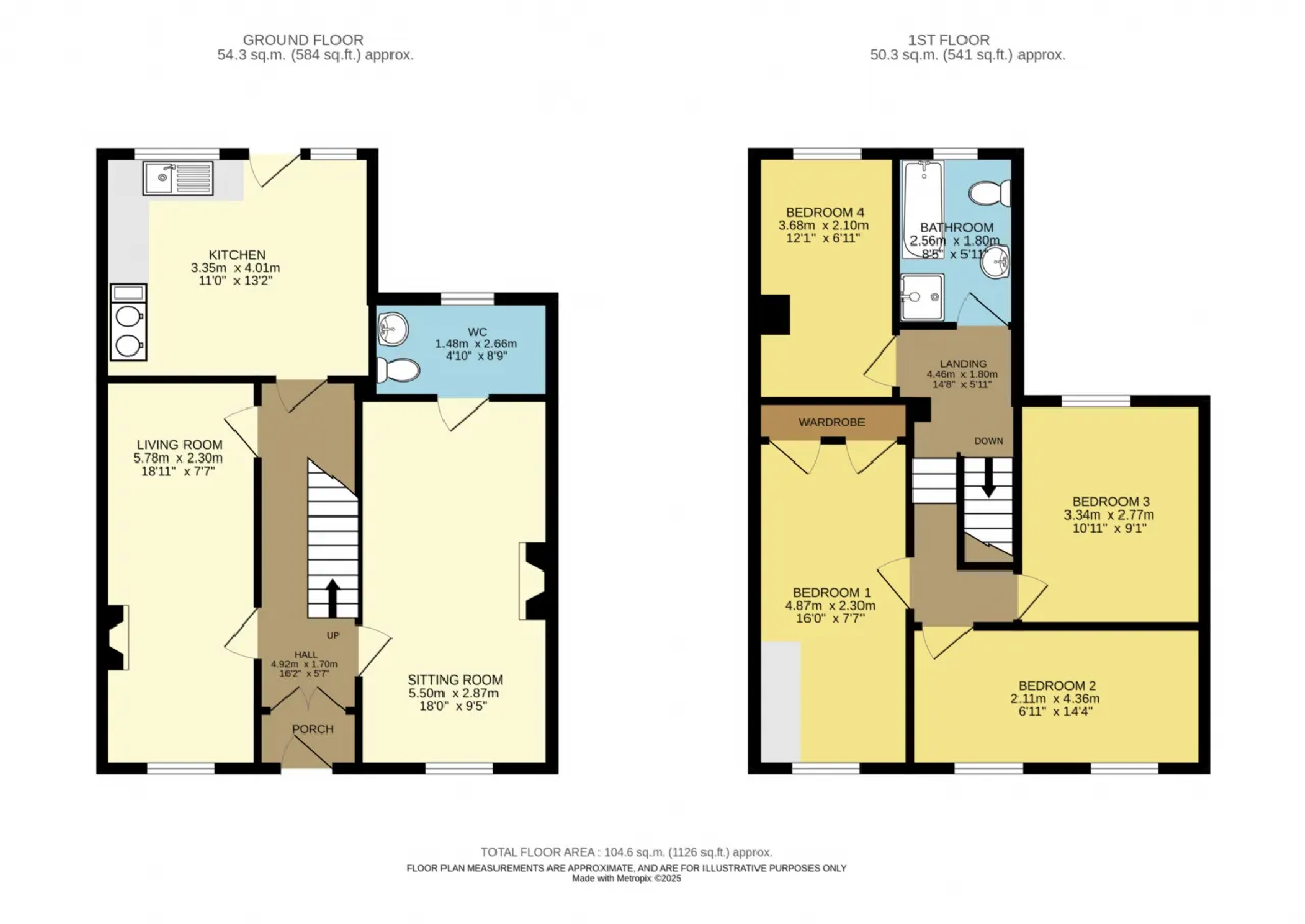 Bedroom 1 4.87m x 2.30m Built in wardrobe front facing to street. carpet flooring, cylinder and water heater fitted in this room. There is an issue with the chimney in this bedroom.