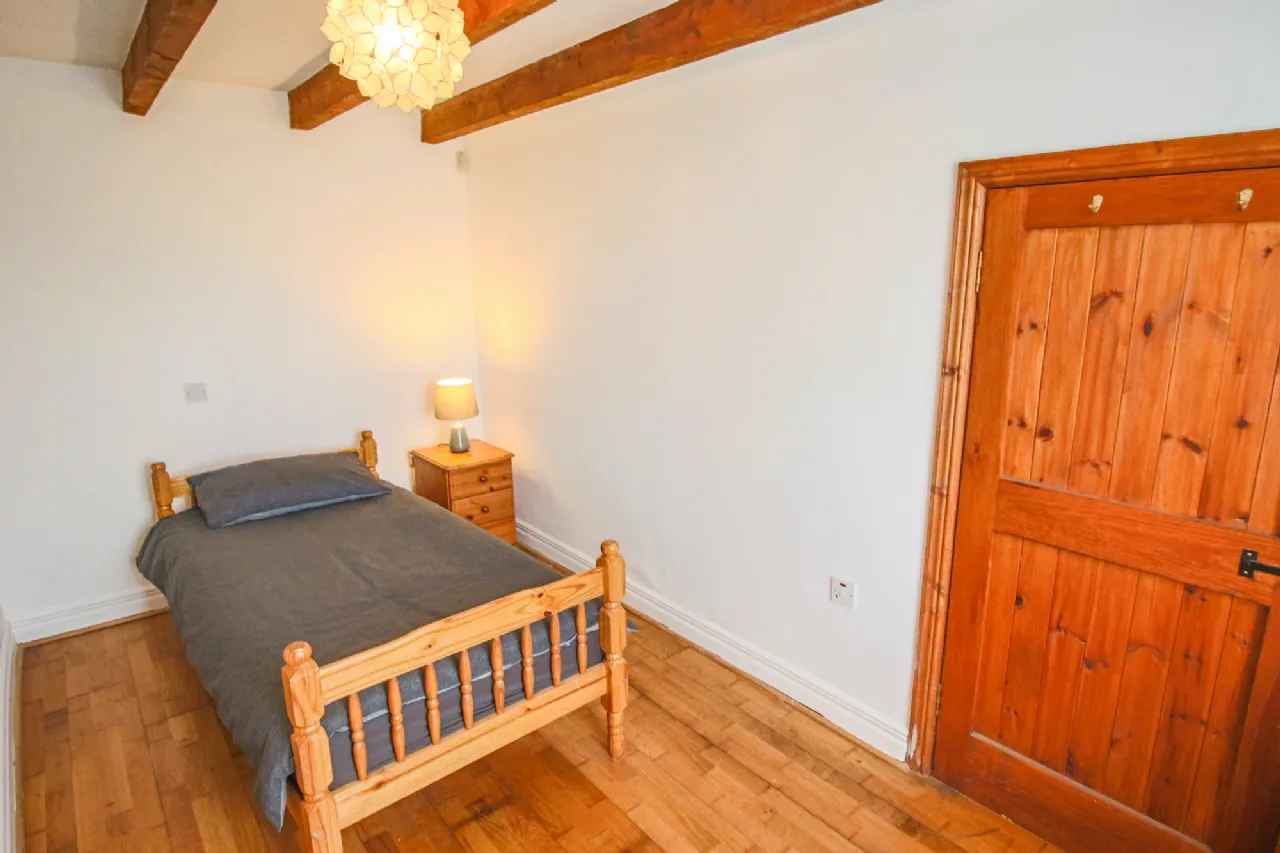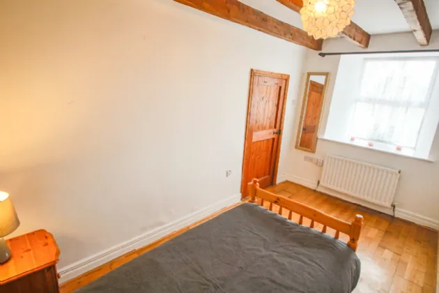 Bedroom 1 4.14m x 2.24m Wood flooring, beamed ceiling feature, radiator, curtain pole