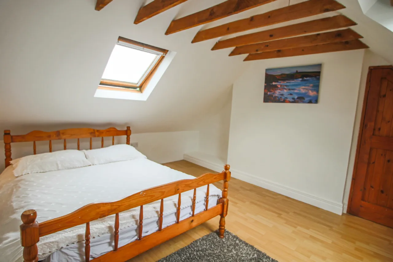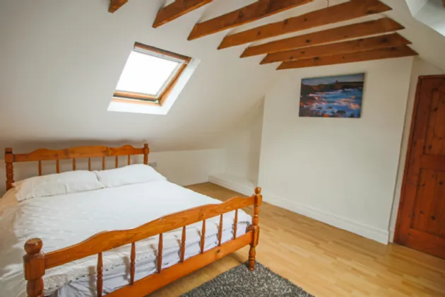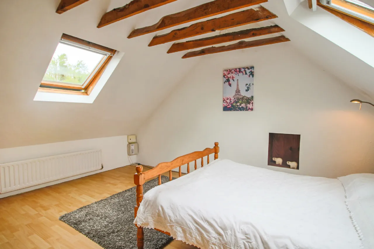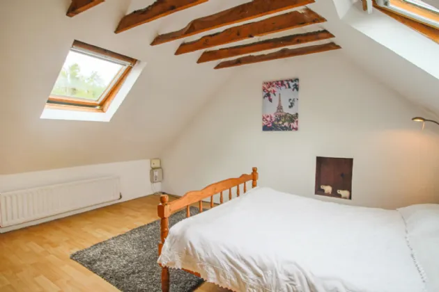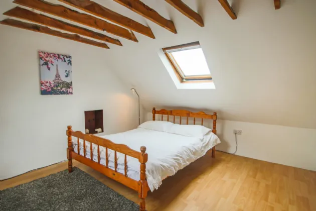 Bedroom 3 4.63m x 3.61m Engineered wood flooring, velux roof lights x 2, radiator, feature hand-cut ceiling beams, alarm connection