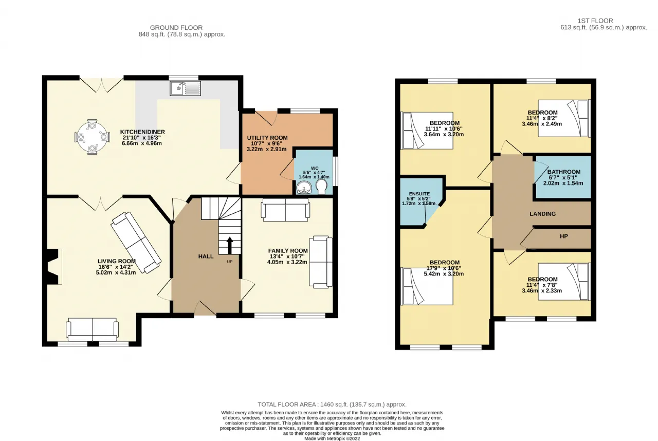 Ensuite Bathroom 1.72m x 1.58m Tiled floor and wet area. W.c., w.h.b. Shower cubicle.