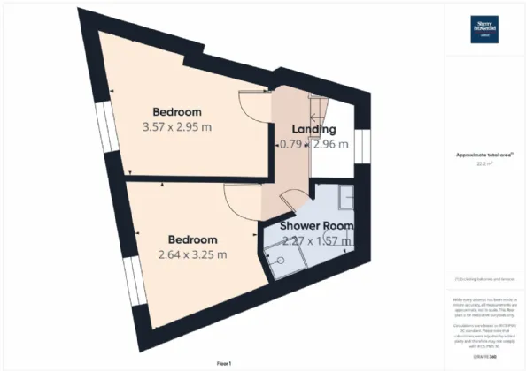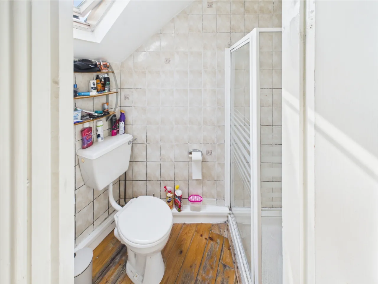 Shower room 2.27m x 1.57m with T&G floor, electric shower, w.c, hand basin.