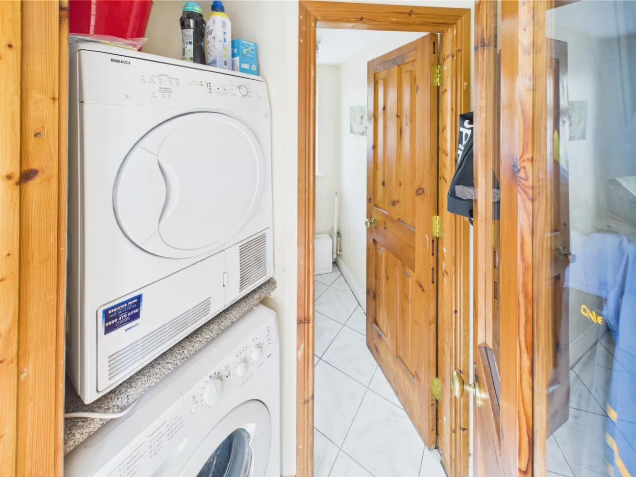 Utility Area 1.54m x 1.36m plumbed for washing machine & dryer, tiled floor.