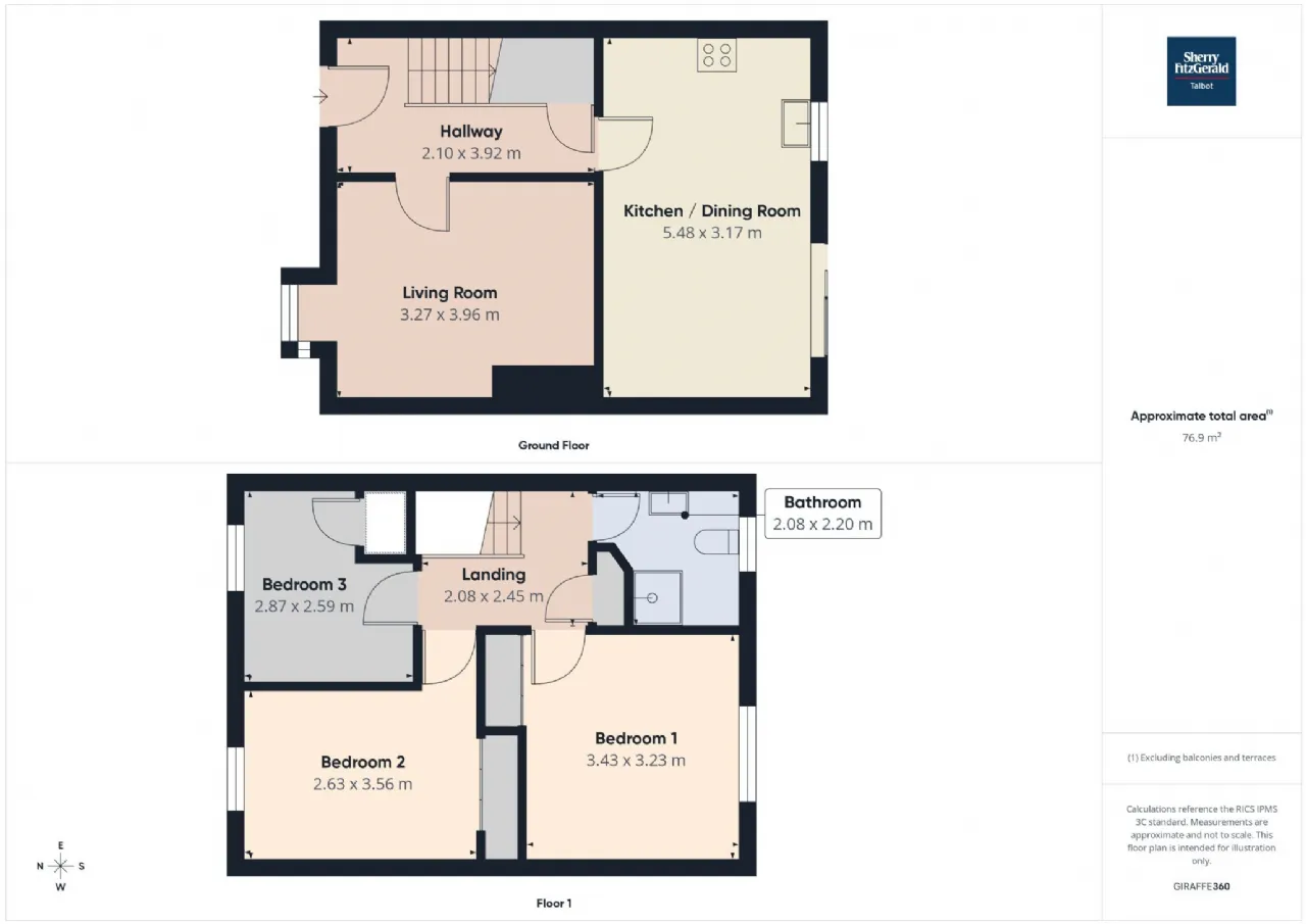 Extending to approximately 77 sq. m, this well laid out home offers practical accommodation over two floors. The ground floor comprises an entrance hallway, living room and a spacious kitchen dining room to the rear with direct access to the enclosed yard. Upstairs there are three bedrooms and a family bathroom. The property was constructed c.1998.