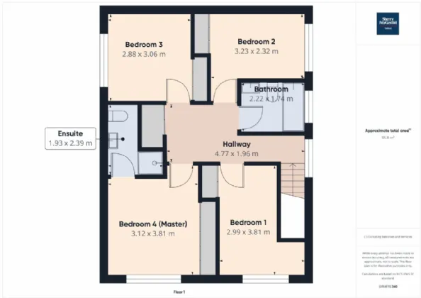 Bedroom 4 (Master) 3.81m x 3.12m carpet flooring and sliderobe
